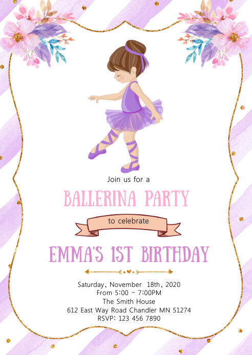 9 200 Ballerina Birthday Invitation Customizable Design Templates Postermywall